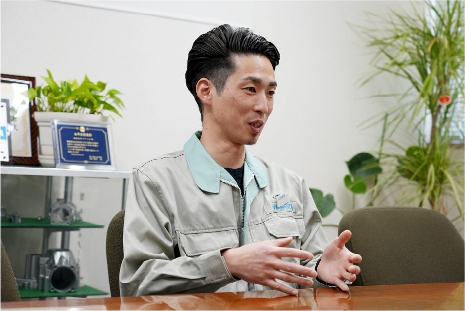 入社14年、好きが高じてものづくりに関する知識や業務経験は積み重ねたものがあり、設計~加工~測定~組立まで全て自分でできることです。更に、電気制御やプログラミングも得意としておりますので、設備導入の際もメーカーと対等に話ができるようになったことです。