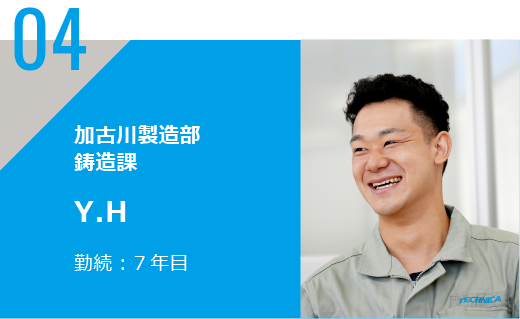 ダイカスト(鋳造)に関わる生産技術職ですが、図面制作、3Dモデル、流動解析、金型の修理など現場の作業、メーカーとの打ち合わせまで・・・幅広い業務を担当しています。